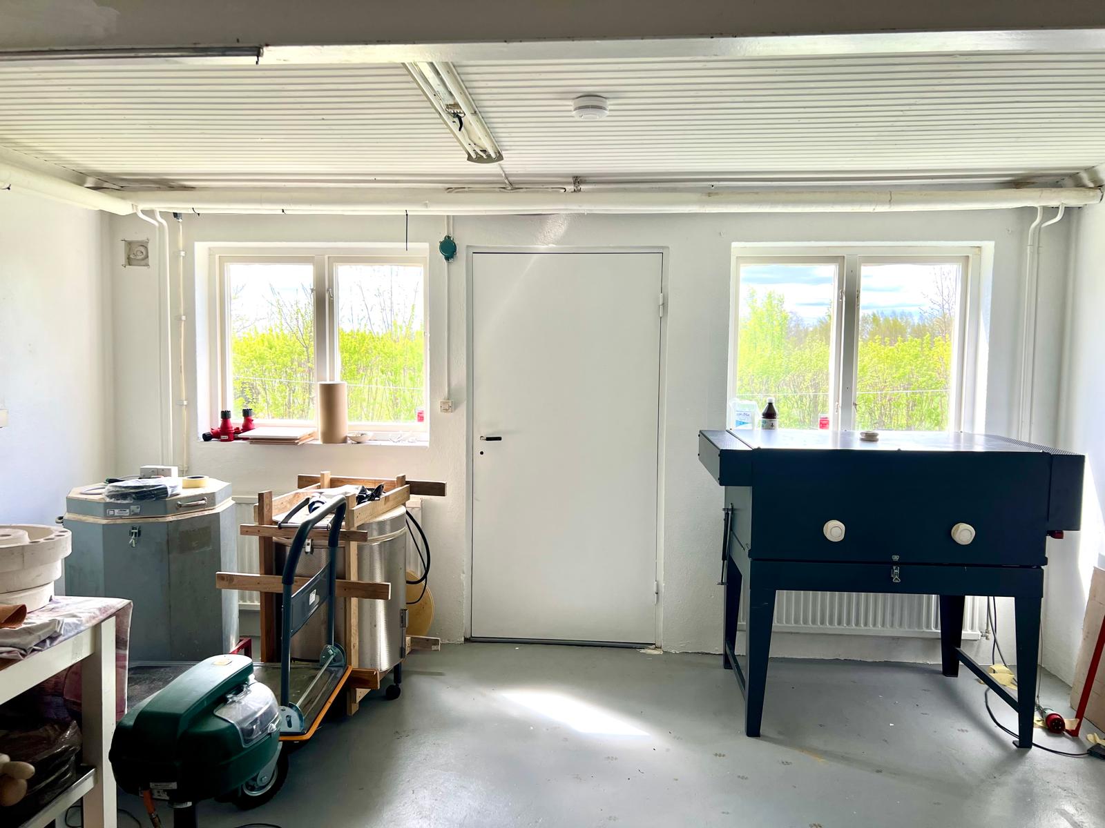 The working area provided is approximately 18 square meters and is equipped with a ceramic and glass fusing kiln. Each craft practitioner will have access to an individual working table and running water. Additionally, there is access to a fully equipped wood workshop. The surrounding garden and natural environment may also be used as an extension of the working space. Practitioners are encouraged to engage with this space respectfully, with care and attention to environmental sustainability.